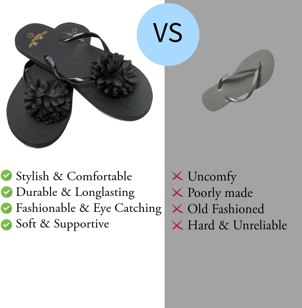 Our Floral Flip Flop design is made unique with a cute flower finish, and our very own logo at the bottom of the sole. The perfect style to wear anywhere!